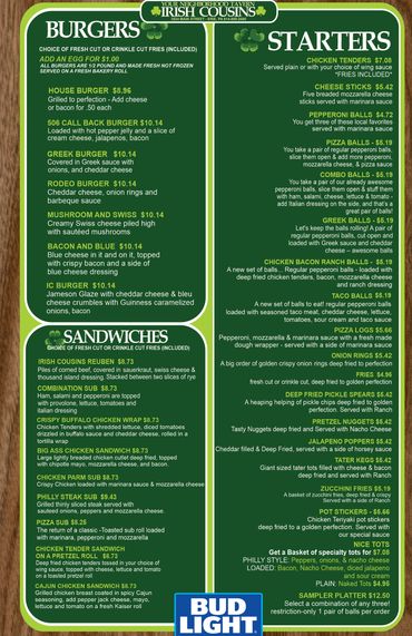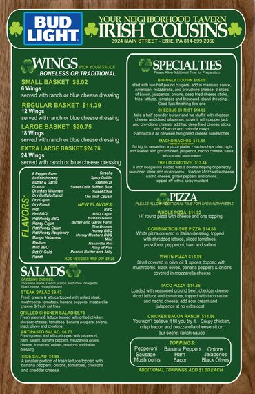(You can also download the menus below for easier viewing)